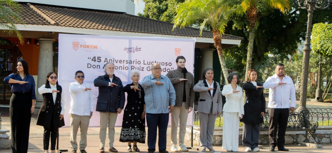 Con un listado de virtudes, obras y acciones que realizó en pro del municipio como hombre visionario y de gran corazón, así fue recordado el benefactor de Fortín, Don Antonio Ruiz Galindo, en el acto cívico conmemorativo de su 45 aniversario luctuoso, realizado por el ayuntamiento que encabeza el alcalde, Lic. Alfonso Efraín “Piccolo” Marín Delfín.