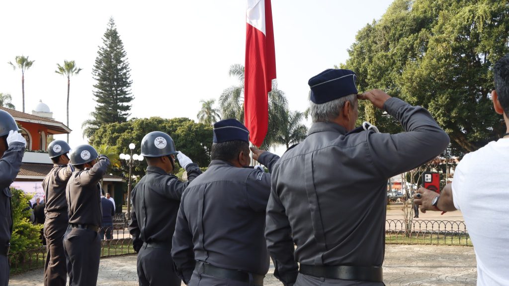 Acompañado de su cabildo, empleados de confianza y el apoyo de la escolta del Pentatlón para realizar los honores al lábaro patrio, en el parque Lázaro Cárdenas, el presidente municipal, destacó la presencia del nieto del benefactor, Mauricio Ruiz Galindo Espinoza y su hijo Fernando.