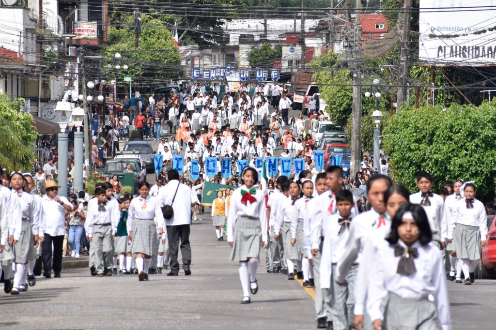 Posterior al acto cívico en el cual estuvieron presentes el cuerpo edilicio, directores y coordinadores, inició el desfile cívico comenzando desde la calle 12 avenida 1, allí personal de Tránsito del Estado abanderó los contingentes y seguido el Pentatlón Militarizado.